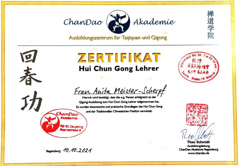 - Zertifizierte Lehrerin Taijiquan / Lizenz F (BVTQ)